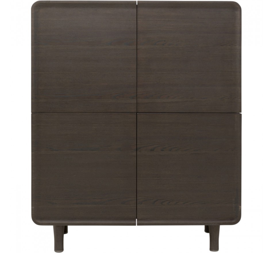 Dit bruine highboard combineert elegantie en functionaliteit. De afgeronde hoeken voegen een vleugje zachtheid toe aan het eigentijdse ontwerp, terwijl de vele opbergvakken een functionele oplossing bieden voor het organiseren van je huis.