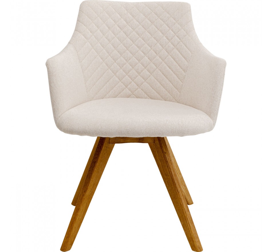 This table chair swivels 180°, so it can also be used as an office chair. With its "reset" function, it automatically returns to its initial position. With its padded seat and oak legs, it's part of a Scandinavian style.