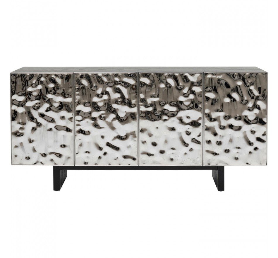 With its black varnished ash structure and embossed chrome doors, this sideboard brings contemporary elegance to your interior. It features 2 cable glands and can therefore be used as a TV cabinet.