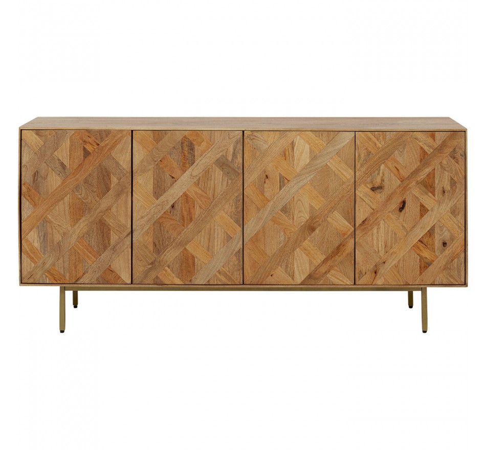 This wooden sideboard blends elegance and originality with its doors adorned with a grid pattern. The lines continue from door to door for a harmonious visual effect. Each piece is unique.