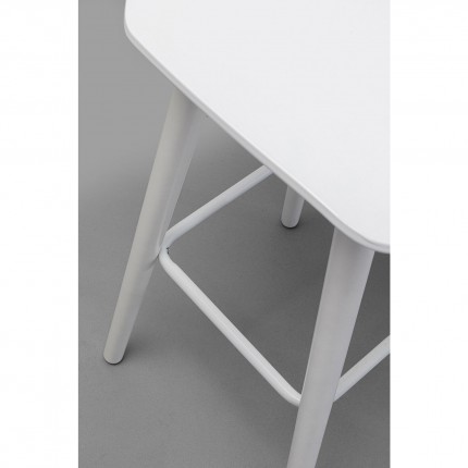 Geef je ruimte een modern tintje met onze minimalistische barkruk. Deze monochrome kruk heeft een stalen frame met poedercoating en een voetsteun en valt op door de glanzende zitting.