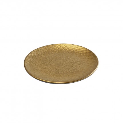 Dit bord is de ster van je tafel met zijn gestructureerde rozeteffect en gouden glans.