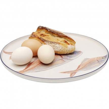 Deze set van acht borden brengt de oceaan naar je tafel! Op vier borden staat een grote blauwe vis, terwijl de andere vier versierd zijn met drie rode vissen. Een harmonieus duo voor een tafel vol kleur.