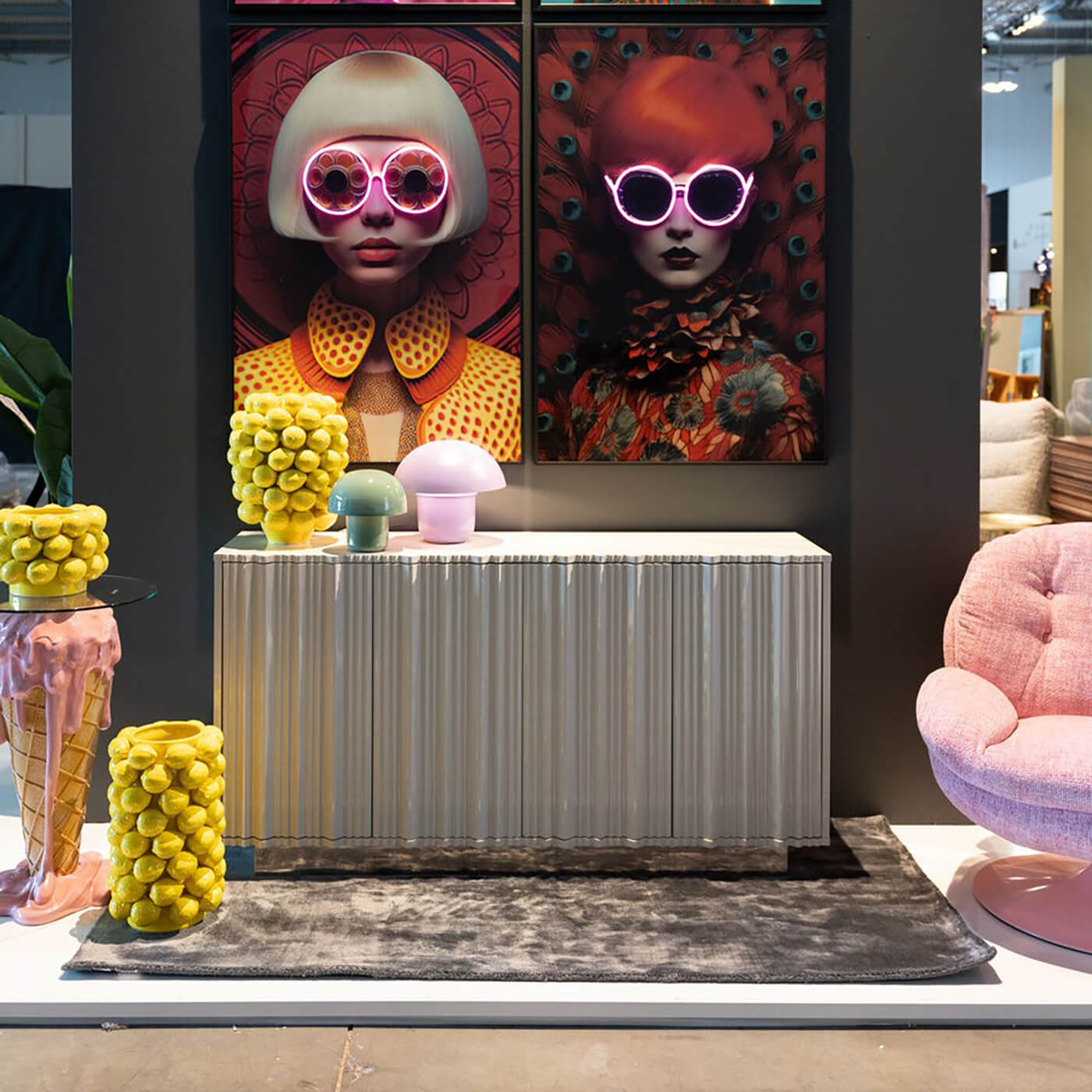 Dit moderne dressoir combineert functionaliteit met sculpturale elegantie. De zacht golvende frontstructuur en de afwerking in hoogglanslak geven dit meubel een fascinerende driedimensionaliteit, waardoor het een stijlvol hoogtepunt is in elke woonkamer, slaapkamer of kantoor. Het ruime interieur is voorzien van verstelbare planken die ruimte bieden aan alles wat je elegant wilt opbergen, van boeken tot serviesgoed tot textiel. Het glanzende roestvrijstalen frame contrasteert prachtig en creëert een luchtig, bijna zwevend effect. Het dressoir komt bijzonder goed tot zijn recht in combinatie met een minimalistisch decor, glazen vazen...