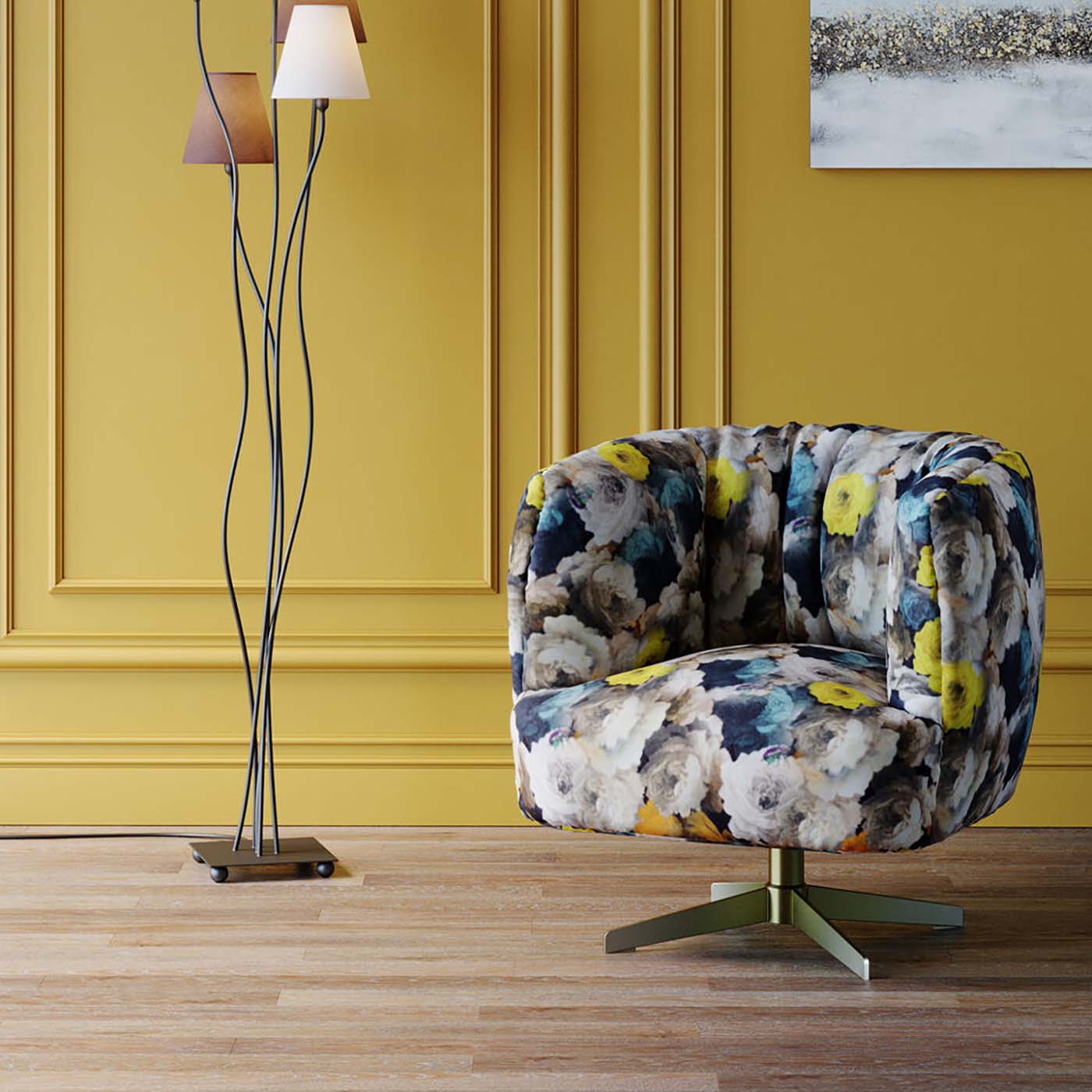 Bring an air of spring into your living room with this armchair featuring multicolored peony prints. Mounted on a steel base, its seat swivels 360 degrees for optimum comfort. Match your living room to your dining room with a chair from the same range!