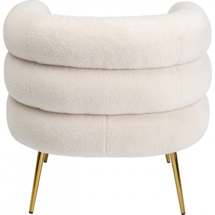 With its rounded curves, gilded steel legs and cream-colored fabric seat, this armchair brings a soft, zen atmosphere to your home.