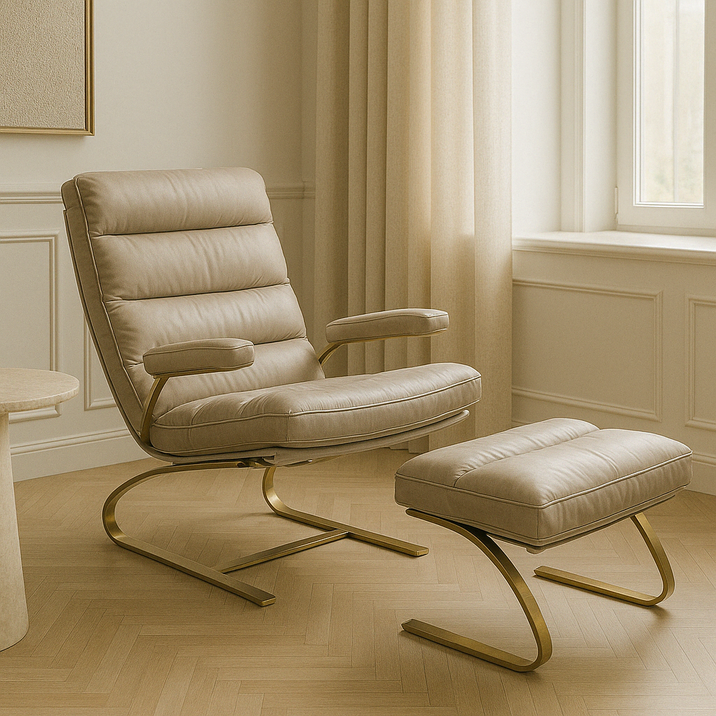 With its clean lines and metal base, this leather armchair makes a statement as a refined piece, ideal for setting up a reading or TV corner.