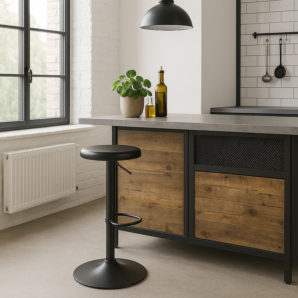 Add an industrial touch to your living space with this steel bar stool. Height-adjustable, this stool offers ultimate versatility to suit different counter or bar heights, whether sipping a cocktail or sharing a casual meal.