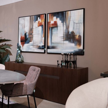 The abstract design with touches of red, blue, white, yellow and black of this painting adapts to all types of interiors. Whether in the living room, bedroom or office, this canvas creates a soothing, serene atmosphere. It goes wonderfully with designer furniture and original accessories to give your decor an exceptional touch.