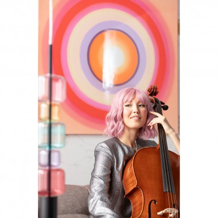 This captivating painting features eye-catching circles, vibrant with colors ranging from pink to purple, beige, red and orange. Each circle overlaps the others, creating a spectacle of color and movement.