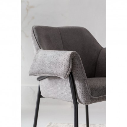 With its gray woven fabric and black steel legs, this chair is perfect for modern, understated interiors.