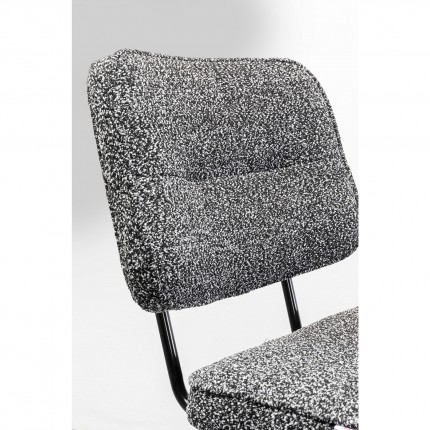 This chair with armrests has a vintage look with its black steel frame and black and white looped fabric seat.