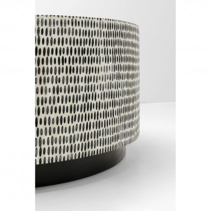This round white coffee table catches the eye with its small black oval motifs spread across its entire surface. A graphic, peppy design, ideal for adding a touch of style to your interior.