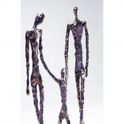 This statuette pays homage to the family, with the parents each holding one of their child's hands. It is inspired by the artist Alberto Giacometti and his sculptures, which are so thin and long that they resemble shadows.