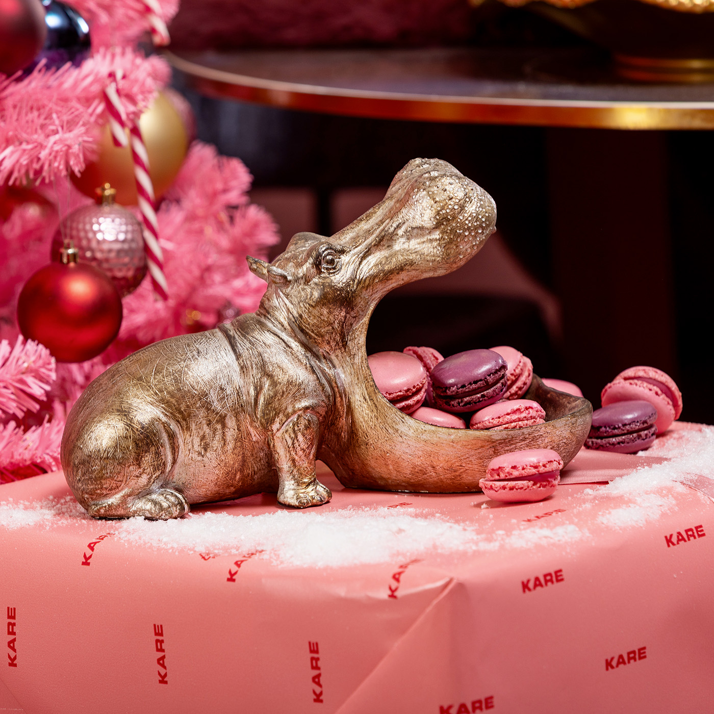 This hippopotamus bowl brings a touch of animal extravagance to your decor. It breathes a chic, bold vibe into any space, on a console, dressing table or shelf. Its open mouth also serves as refined storage for your jewelry or small everyday objects. Paired with glass, deep black or bright hues, it becomes a real focal point.