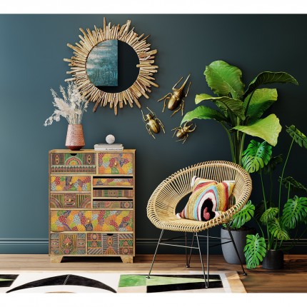 In the ethnic style, this Legno mirror takes on an eco-natural style thanks to the wood framing it. It guarantees a complete change of scenery in your home while adding a wild and atypical touch to it. With a diameter of 82 cm, this mirror decorated with solid wood pieces will give a real feeling of sunshine in your home.