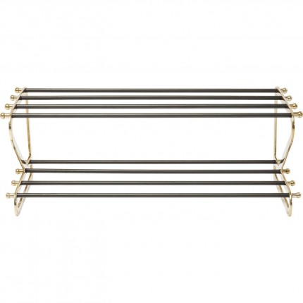 This shoe rack fits perfectly into a modern interior with its two tiers, made up of steel branches connected by gold-plated aluminum sides. You can never have enough shoes, can you? They just need to be tidy and elegant, as with this model.