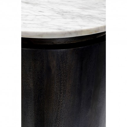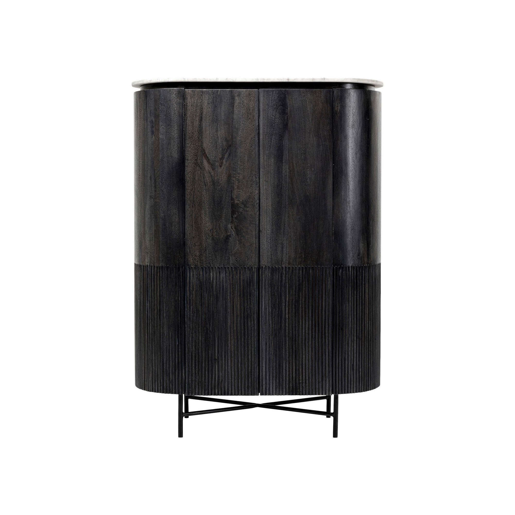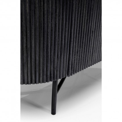 This sideboard stands out with its cylindrical shape inspired by retro style. Designed with a white marble top, this piece contains three shelves for efficient storage. The vertical details of the lower part of the cabinet create a relief effect that contrasts with its curved silhouette. Don't hesitate to combine it with the console, the TV stand or the low sideboard from the same collection for a matching interior!