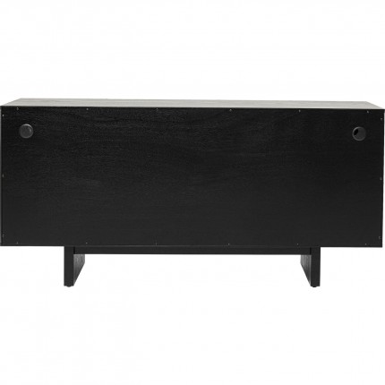 With its black varnished ash structure and embossed chrome doors, this sideboard brings contemporary elegance to your interior. It features 2 cable glands and can therefore be used as a TV cabinet.