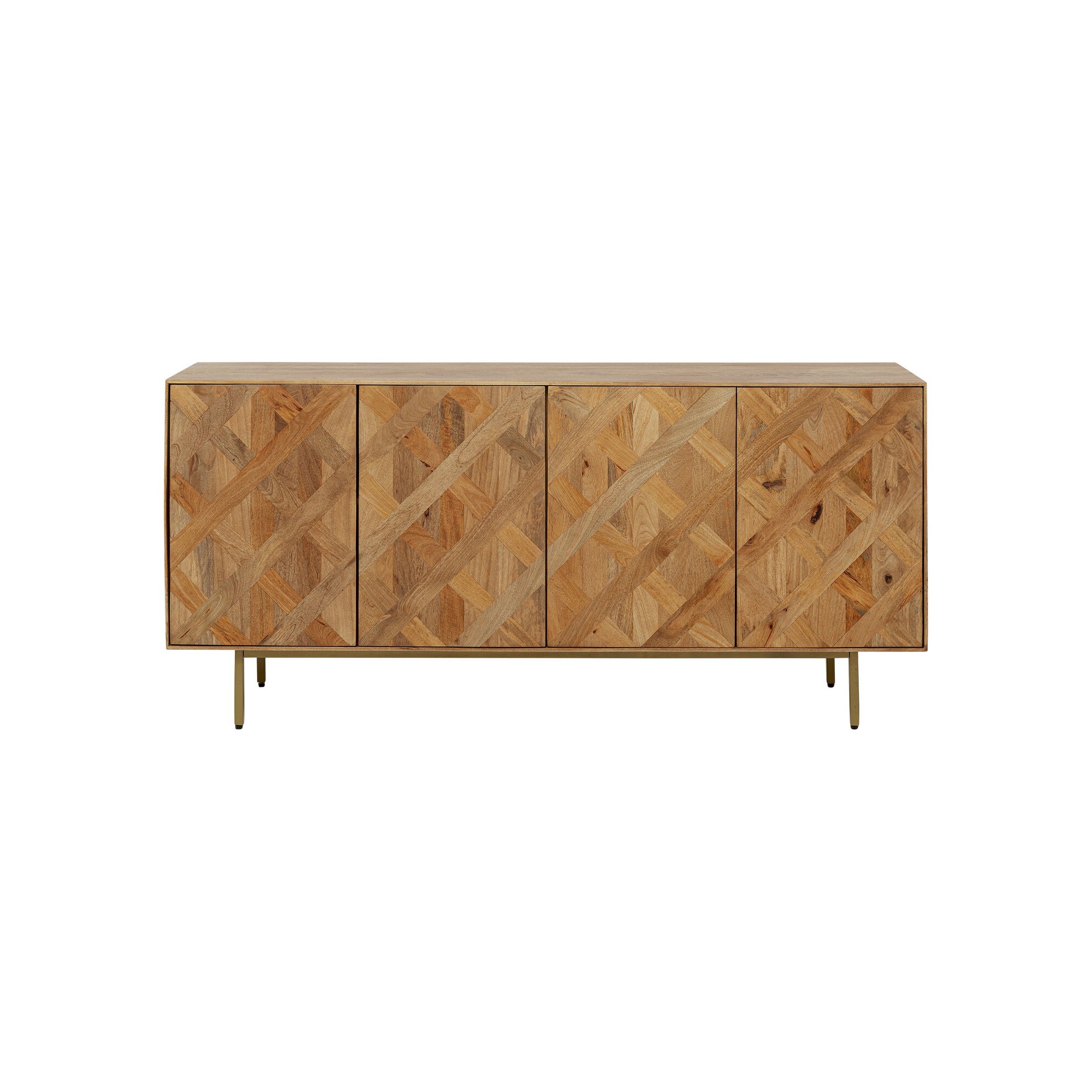 This wooden sideboard blends elegance and originality with its doors adorned with a grid pattern. The lines continue from door to door for a harmonious visual effect. Each piece is unique.