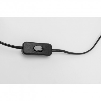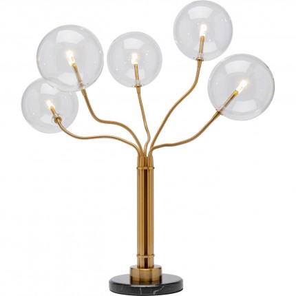 This futuristic lamp combines chic and ingenuity. Its round base in black marble contrasts with its five transparent glass shades and elegant movable gold rods.