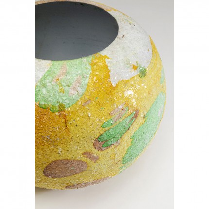 A burst of color with this round vase dressed in a mosaic of bits of glass. Its predominantly yellow hue adds a warm, artistic touch to your decor.