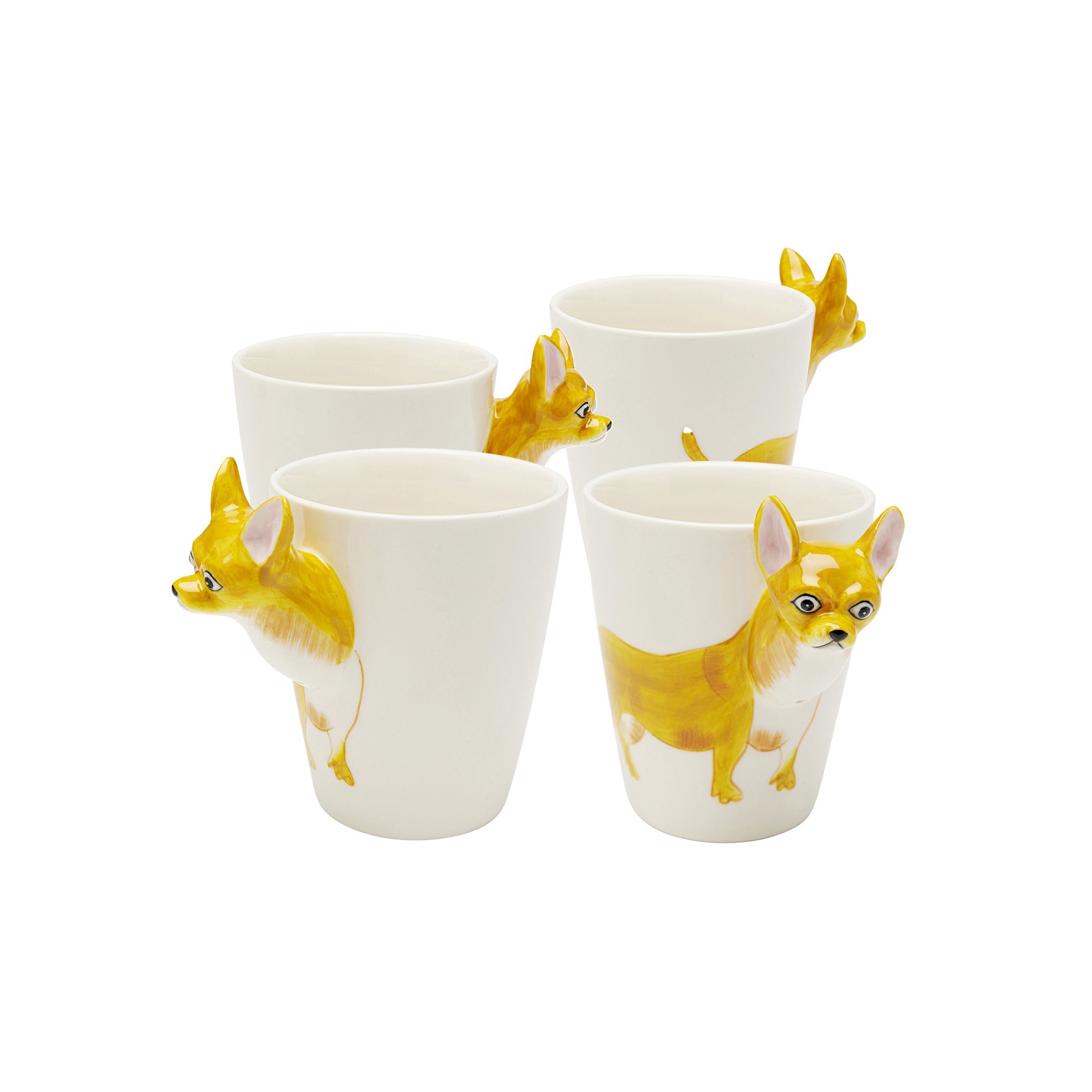 Deze schattige mok voegt een speels tintje toe aan je dagelijkse koffie- of theepauze. Versierd met het zorgvuldig getekende lichaam van een Chihuahua, roept het de ondeugende energie van dit geliefde ras op. Maar wat deze mok echt speciaal maakt, is zijn opstaande kop, die eruit springt als een origineel handvat. Dit kleine reliëf voegt een leuke tactiele dimensie toe aan de drinkervaring, waardoor deze mok een leuke en praktische metgezel is voor al je favoriete drankjes.