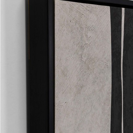 Dit schilderij brengt een creatieve sfeer in je huis. De grijze geometrische vormen op een zwarte achtergrond laten je fantasie de vrije loop, zodat je er je eigen interpretaties op kunt projecteren, passend bij je persoonlijkheid en stijl van inrichten.
