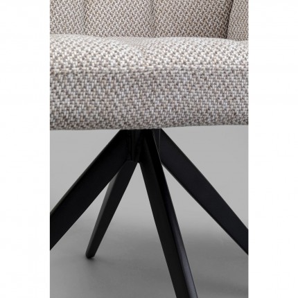 Met zijn grijze zitting van geweven stof zal deze stoel een aanvulling zijn op je moderne interieur. Met zijn armleuningen en draaibare stalen onderstel kan hij ook worden gebruikt als bureaustoel.