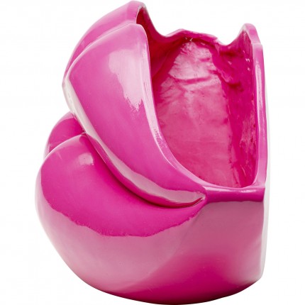 Deze vaas creëert een sensuele, vrouwelijke sfeer met de afbeelding van lippen bedekt met fuchsiaroze make-up.