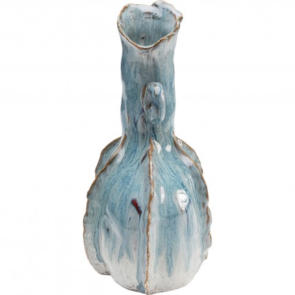 Deze vaas van steengoed zal je charmeren met zijn rustgevende lichtblauw, versterkt door kleine kleuraccenten. Origineel en vol charme, het zal je boeketten bloemen verfraaien terwijl het frisheid en vrolijkheid in je interieur brengt.