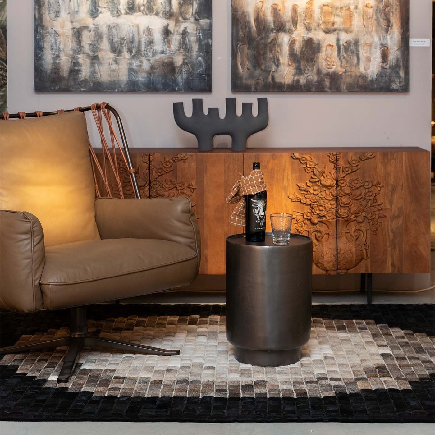 Een elegante touch voor verfijnde interieurs: dit designtapijt van groot formaat combineert moderne geometrie met elegante materialen. Het koele kleurenspel in grijstinten en het korrelige patroon zorgen voor een duidelijke structuur en visuele spanning. Dankzij het royale oppervlak is dit unieke stuk ideaal om diepte te geven aan open woonruimtes of om elegante accenten te leggen onder eettafels en banken. De hoogwaardige afwerking met rundleder en wolrug garandeert een luxueus gevoel en een duurzame kwaliteit. Perfect in combinatie met puristische meubels of metallic details voor een interieur met art gallery charme.
