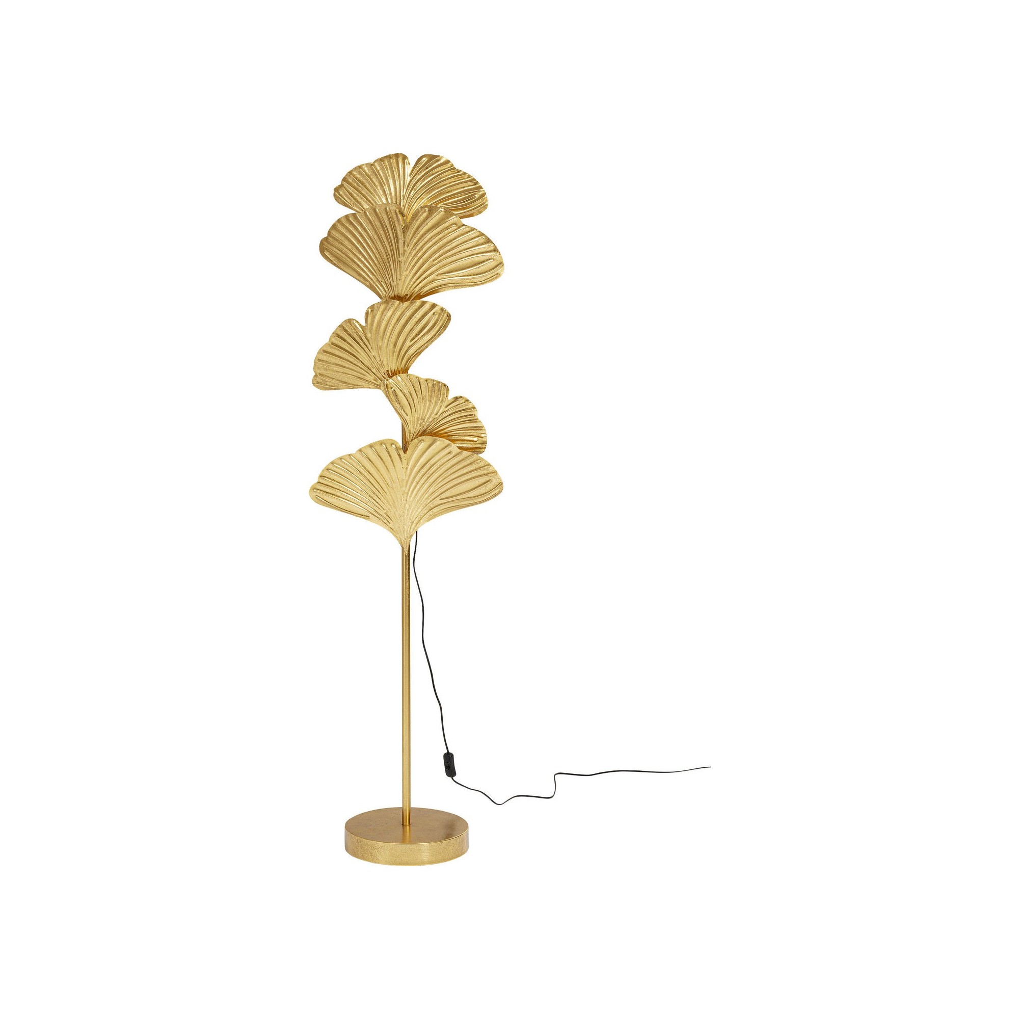 Deze staande lamp brengt een onmiskenbare elegantie in uw interieur dankzij de vijf gouden ginkgobladkappen. Ontdek ook onze schalen, vazen en andere lampen van de Ginkgo reeks!