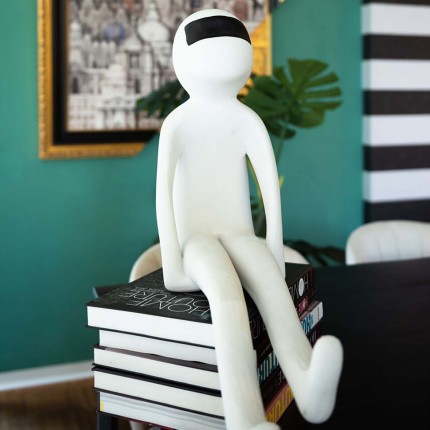 Deze zittende blanke man, met zijn handen onder zijn dijen en zijn hoofd naar de hemel, belichaamt een zachte sereniteit.